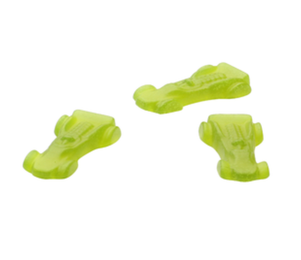 Ingredienser: Socker, glukossirap, modifierad majsstärkelse, gelatin, surhetsreglerande medel (citronsyra), aromämne, färgämne (klorofyll-kopparkomplex, kurkumin), vegetabilisk olja (kokos, raps), ytbehandlingsmedel (karnaubavax).