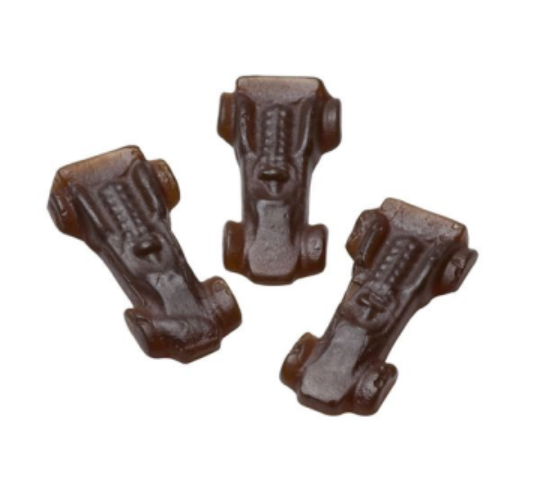 Ingredienser: socker, glukossirap, modifierad majsstärkelse, gelatin, surhetsreglerande medel (citronsyra, mjölksyra), aromämnen, MALTSIRAP FRÅN KORN, vegetabilisk olja (kokos), ytbehandlingsmedel (karnaubavax), färgämne (karmin).