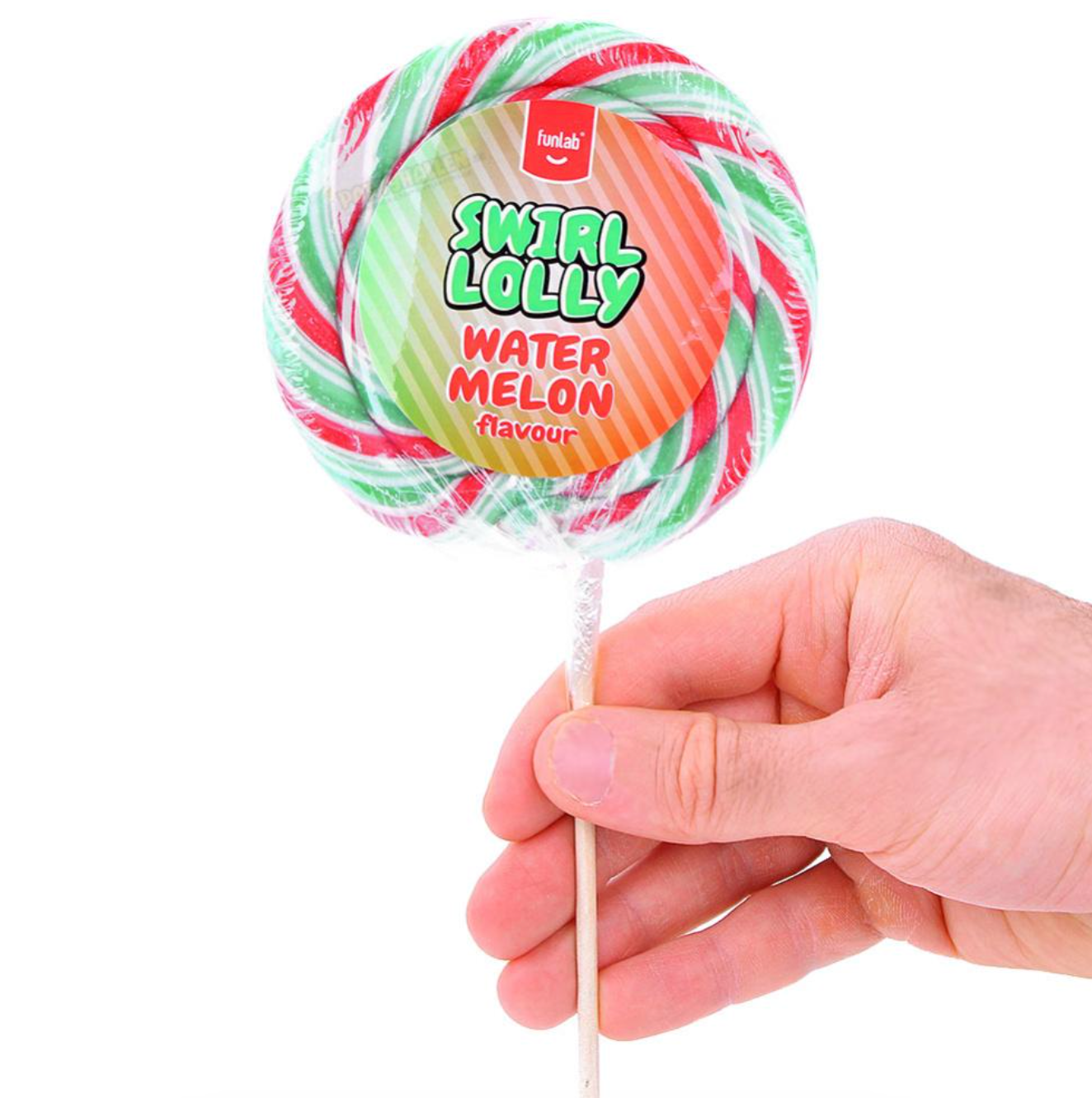 Gillar du vattenmelon kanske en stor och delikat godis-klubba och lolly med swirl mönster är något för dig! En både läcker och rolig swirl lollipop och frukt-klubba som passar perfekt som ett smaskigt godis för dig som vill ha en klubba med smak av mumsig vattenmelon.