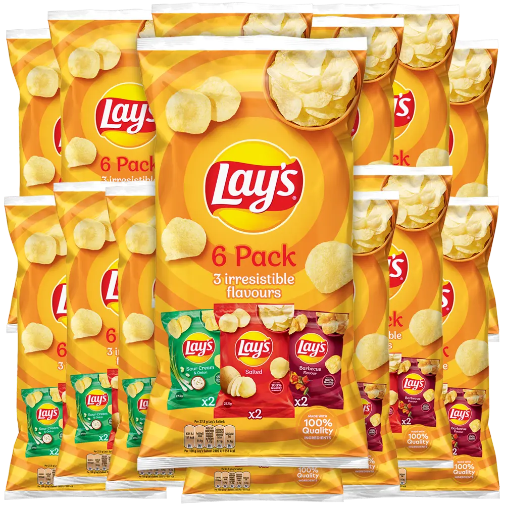 Krispigt, smakrikt och alltid lika gott! Lay’s 6-pack är den perfekta mixen för både fredagsmyset och utflykten! Här får du tre klassiska favoriter i praktiska portionspåsar: