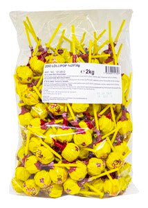 Ingredienser: Socker, glukossirap, surhetsreglerande medel (E270, E327), dextros, arom, färgämnen (E120, E160a).